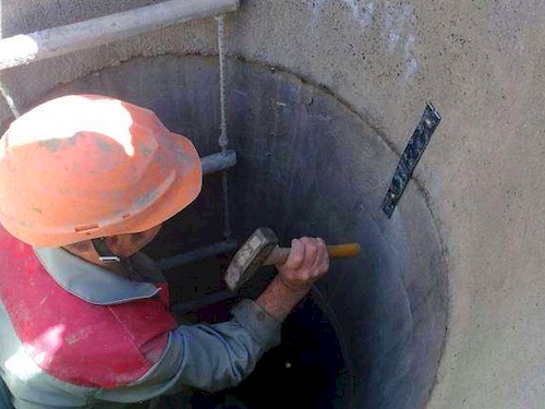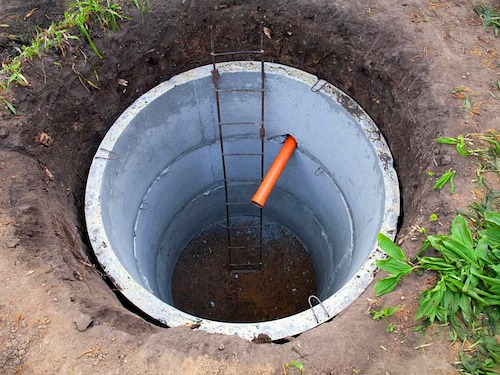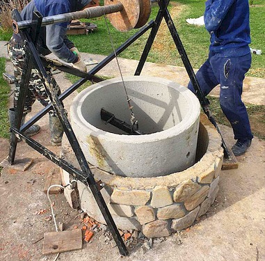- Укрепление стен – после достижения необходимой глубины, стенки шахты укрепляются камнем или бетонными кольцами для предотвращения их обрушения.